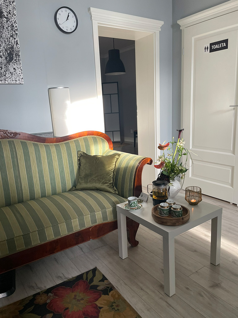 Otwierając drzwi do gabinetu powita Cię twoja terapeutka, która przeprowadzi wywiad i ustali twoje potrzeby. Poczęstuje Cię kubkiem ziołowej herbaty, parzonej na recepcji w towarzystwie żywych kwiatów.